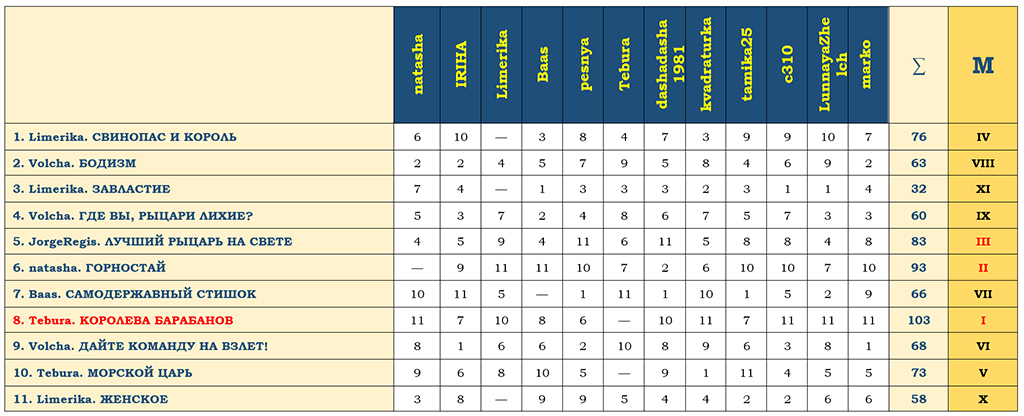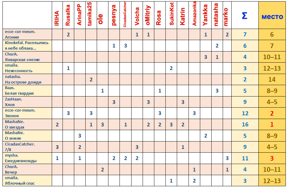| Итоги голосования в рамках Турнира № 87 |