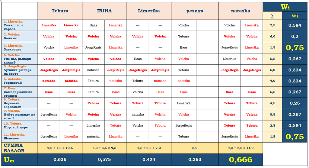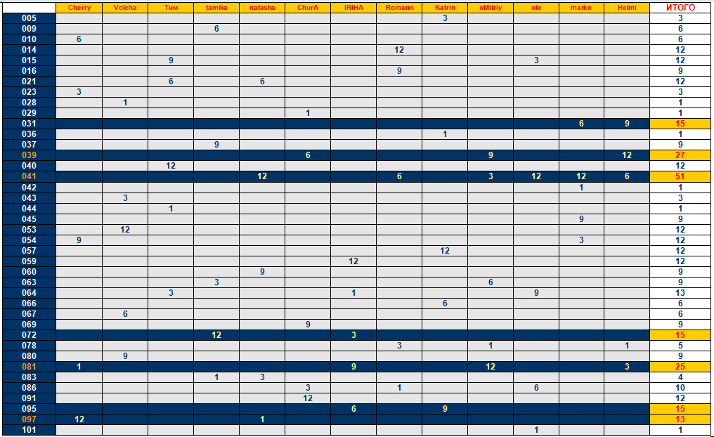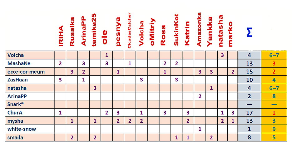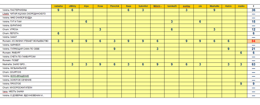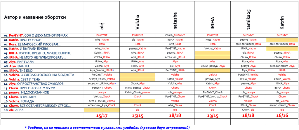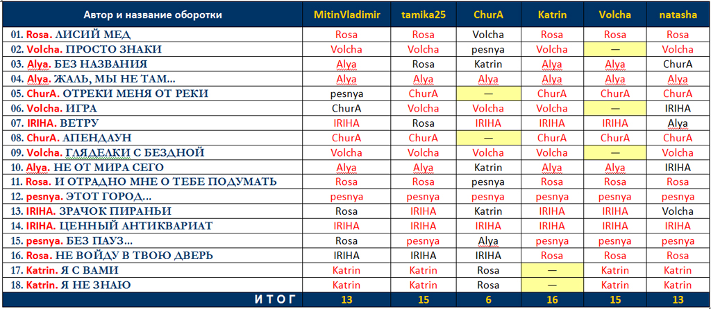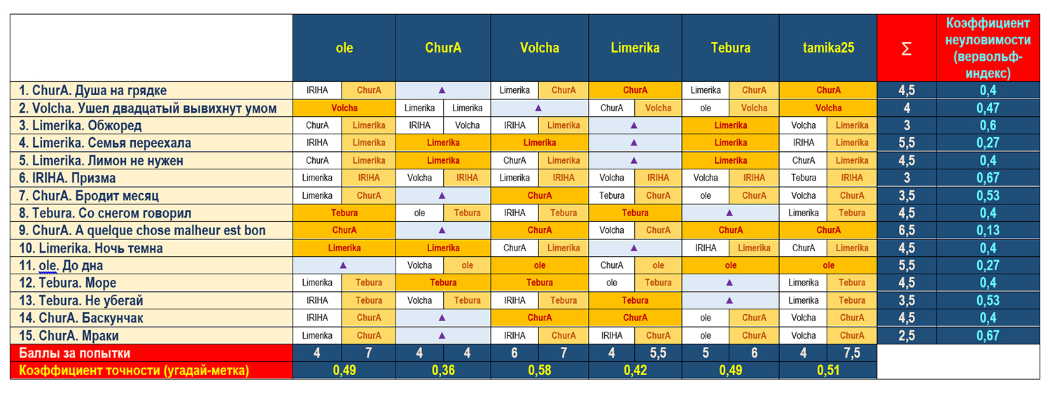 | Сводная таблица угадайки «Охота на оборотня» в рамках «OtvertkaFest - 2015» |