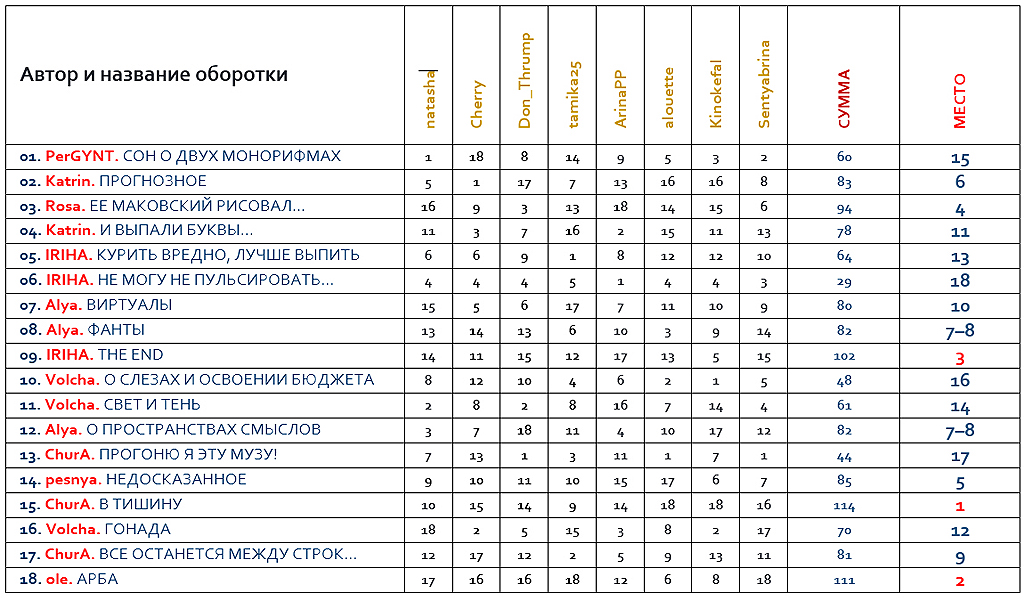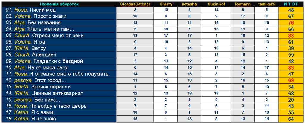 | Сводные итоги угадайки по конкурсу обороток в рамках «OtvertkaFest - 2014» |